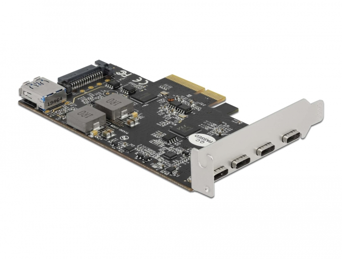 Delock PCI Express x4 Karte zu 4 x USB Type-C + 1 x USB Typ-A - SuperSpeed USB 10 Gbps - Low Profile Formfaktor, PCIe, USB 3.2 Gen 2 (3.1 Gen 2), Niedriges Profil, PCIe 3.0, SATA 15-Pin, 10 Gbit/s